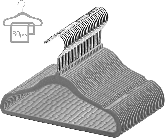 GoodtoU Kids Velvet Hangers,30 Pack Baby Hangers for Closet Non Slip Velvet Clothes Hangers Coat Hangers for Toddler Children Infant Hanger (Dark Grey 30Pack)