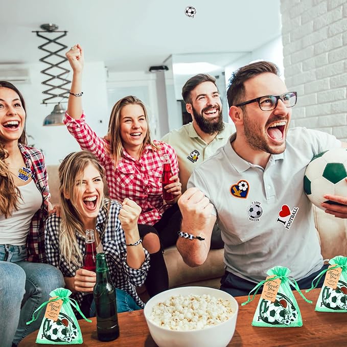 - Abundant Soccer Party Favors: you will get a total of 130 soccer party favors, including 20 x soccer backpack keychains, 20 x soccer Bracelet, 20 x thank you kraft tags, 50 x soccer stickers, 20 x organza soccer gift bags, meeting your different decoration needs, also suitable for soccer team and fan party