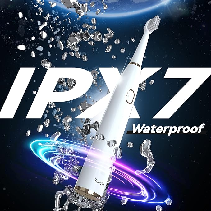 - IPX7 Waterproof and 2-Mins Timer Develop Healthy Tooth Brushing Habits: Built-in 2 minutes timer to ensure scientific brushing time, the sonic electric toothbrush pauses every 30 seconds to remind you to change the brushing area. And you can rinse it easily or use it in the shower with IPX7 waterproof.