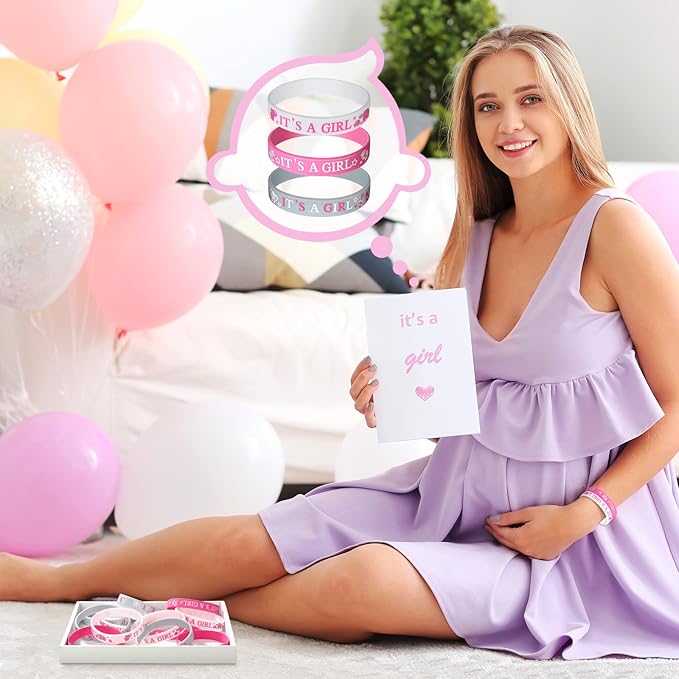 - Wide Application: it is ideal for everyone who joins the baby shower party, gender reveal party, and suitable to be applied as good gifts for your families, friends and colleagues; The baby shower rubber wristband bracelets can be matched with other baby birthday party like balloon boxes, which could create a joyful atmosphere and make your gender reveal party full of laughter