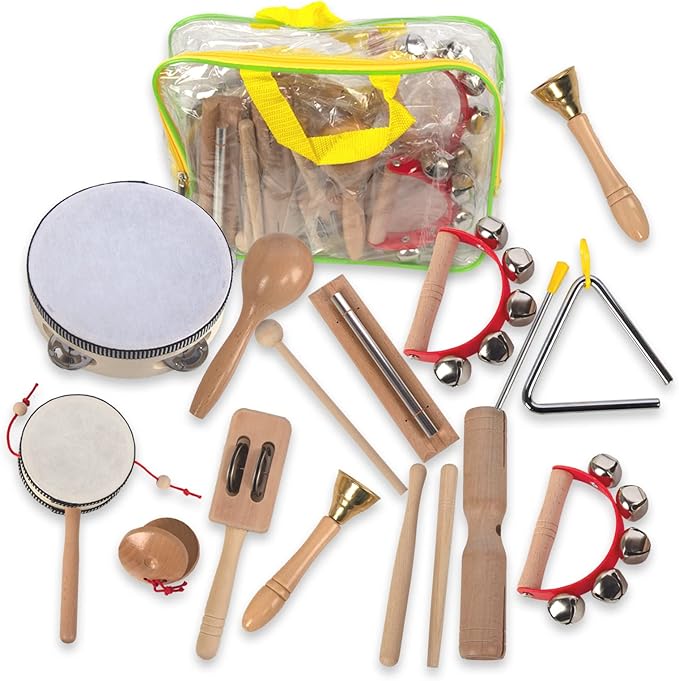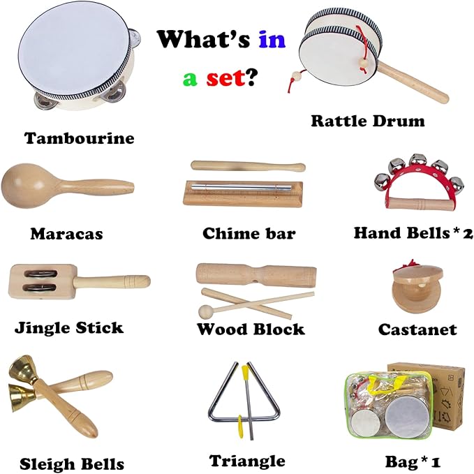 - 【Montessori Toys for Toddlers】: The instruments toy set inspires children’s sense of sight, hearing and touch. It will be helpful to cultivate the kids’ sensitivity of music and the percept of rhythm, improve the creativity and the ability to distinguish instruments, and develop the kids’ interests