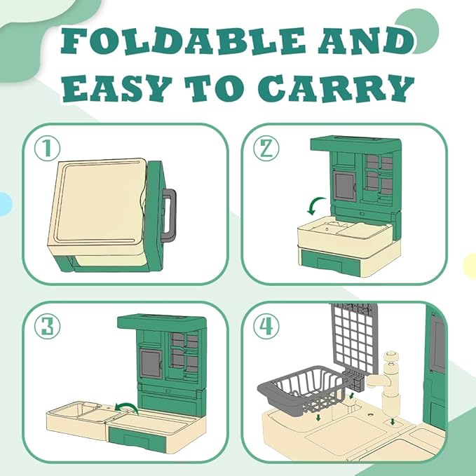 Kitchen Play Set for Kids - 49PCS Pretend Cooking Playset Accessories with Pot and Pan,Dish Rack,Play Sink,Pretend Play Food Toys with Baby&Toddler-Educational Gift for 3 4 5 6 Ages Girls&Boys