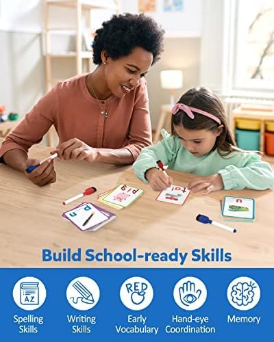 - CVC Word Writing Card: 114 pcs of CVC word cards are separated into two levels by colors, with 4 dry-erase markers that are wipable for repeated use. The package also comes with a portable bag for easy storage.