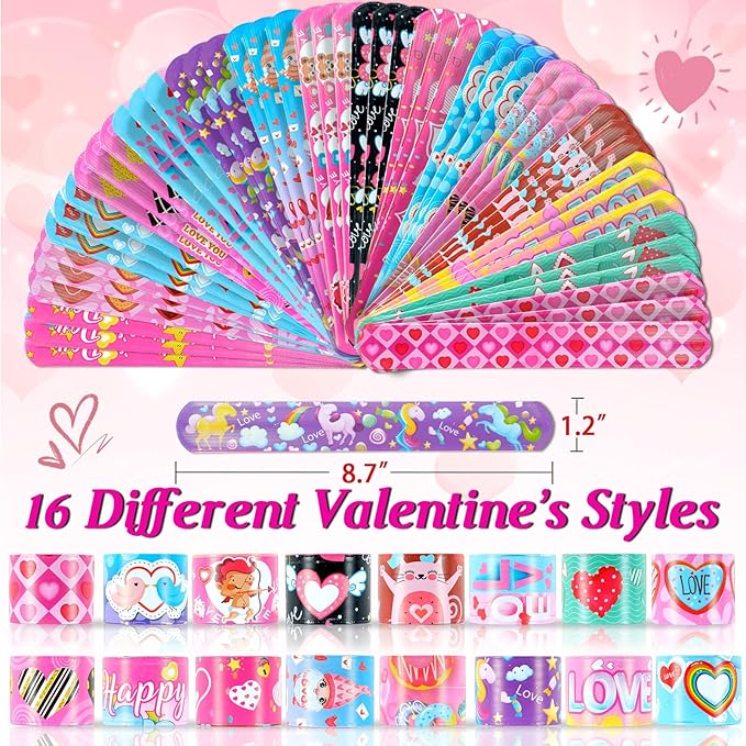 - Make Valentine's Day fun and Exciting - These colorful Valentine's Day slap bracelets come in various Valentine's styles and are easy to wear. With 48PCs included, you'll have plenty to share with your friends and family. You and your friends can have a blast wearing these festive accessories and celebrating the holiday together.