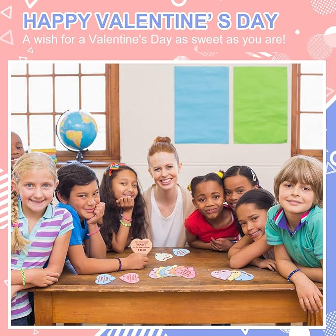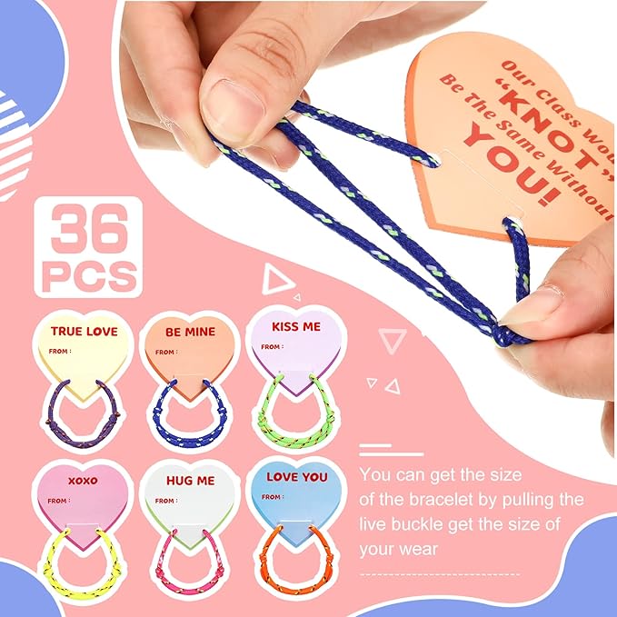 Yinkin 36 Sets Valentine's Day Bracelets with Cards Kids Friendship Bracelets Knot Design Bulk for Girls Boys Classroom Gifts Accessories Valentine's Day Party Favors Gifts Teacher Goody Bag Stuffers