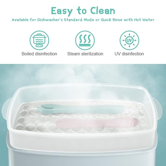 - đ„ŁăEasy to CleanăFirst Stage Feeding Spoons and forks are very easy to clean because they are made of silicone, just rinse with soap and warm water. They are also dishwasher and boil-safe. Toss them in the dishwasher for a quick clean, or boil them for a deeper clean!
