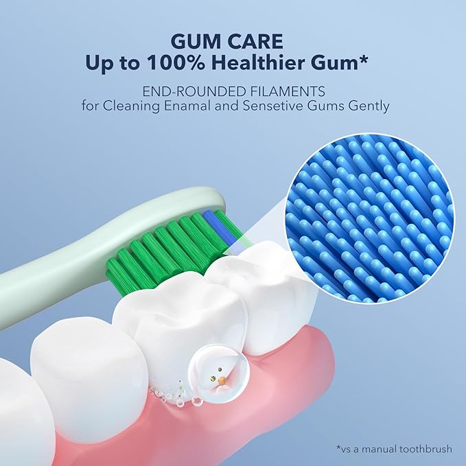 - 【"W" shape design & 4 DuPont Brush Heads】--- More comprehensive and gentle cleaning experience --- [1] Unique "W" shape design to suit teeth surfaces and remove up to 100% more stains from hard-to-reach spots, minimize the risk of damage to gums and tooth enamel. [2] Comes with 4 replacement toothbrush heads. Each brush head lasts 3 months so 4 heads will last for around one year.【NOTICE: Blue indicator bristles fade in color to let you know when it's time to replace the brush head】