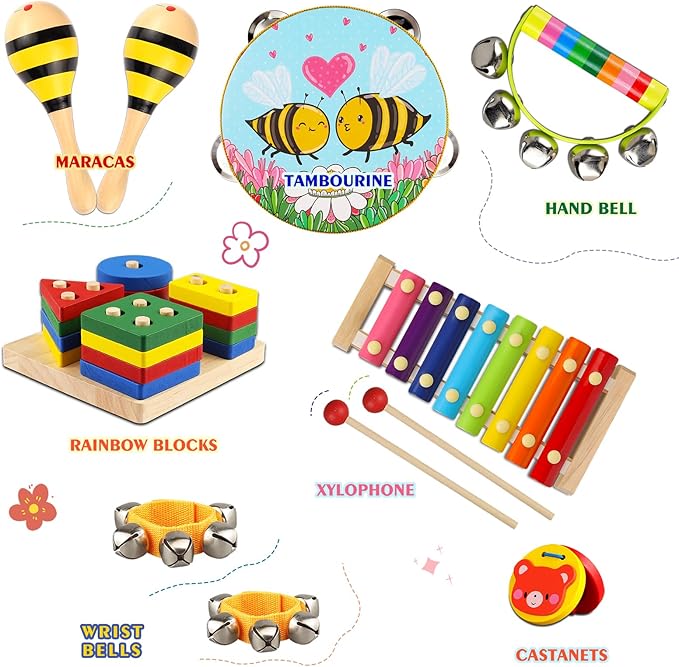 - 🎵【Best Montessori Musical Toys for Toddlers 1-3】:The toddler educational instruments are devoted to help kids in moving, grooving, and feeling the beat, cultivate children's sensitivity of music and the perceptive of rhythm, develop Kids Intelligence,and to improve children's hand-to-eye coordination, social skills and sharpen concentration.