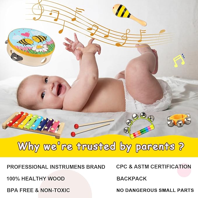- 🎵【Perfect Kids Musical Instruments For Toddlers】:Our baby musical toys is very colorful,expose your mini-musician to different tones, volume, and rhythm, which is attractive to kids. And they comes with a nice bag.Perfect preschool toys for kids' birthday or Christmas gift.