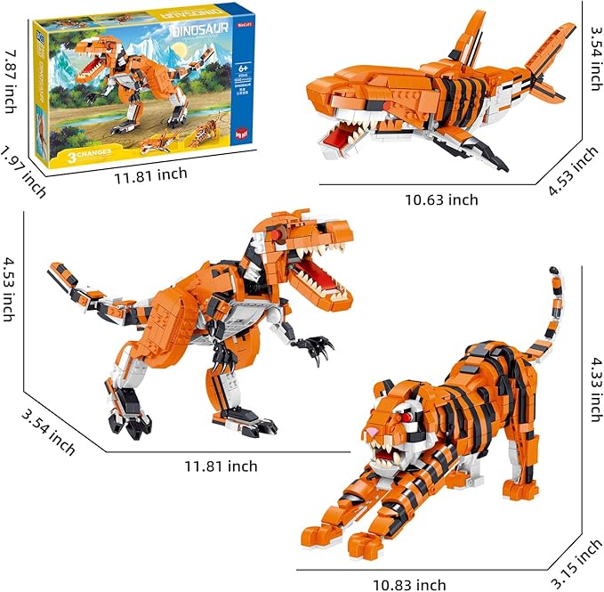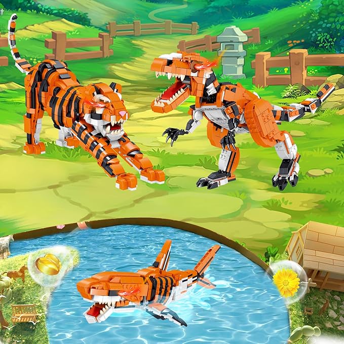 1030 Piece STEM Building Toys-3in1 Mini Transforming Toy Building Set with Dinosaur/Tiger/Shark Building Kit, Educational Toy for Kids 6-12, Christmas Birthday Gifts for Girls Boys Ages 8-14+