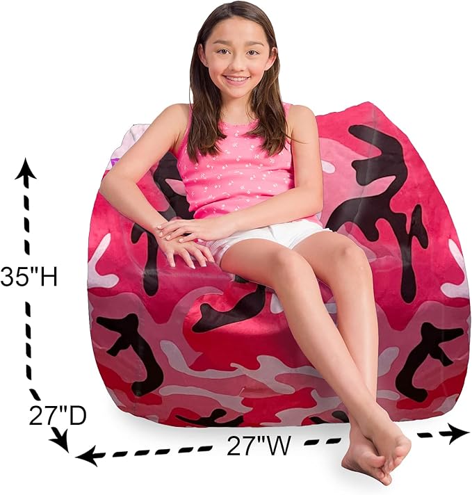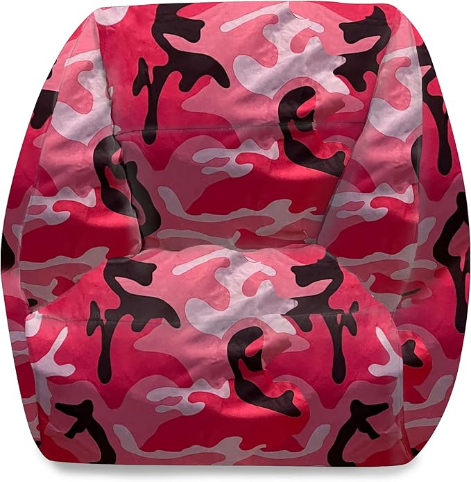 Posh Creations Structured Comfy Bean Bag Chair for Gaming, Reading and Watching TV, Coronado Chair, Nylon - Camo Pink and Black