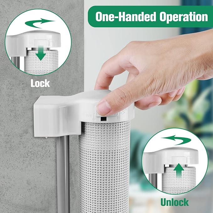 - [Retractable Design - Saving Space] The retractable gate is easy to use in high traffic areas, and the mesh baby gate can be completely retracted when not in use without taking up a large space.