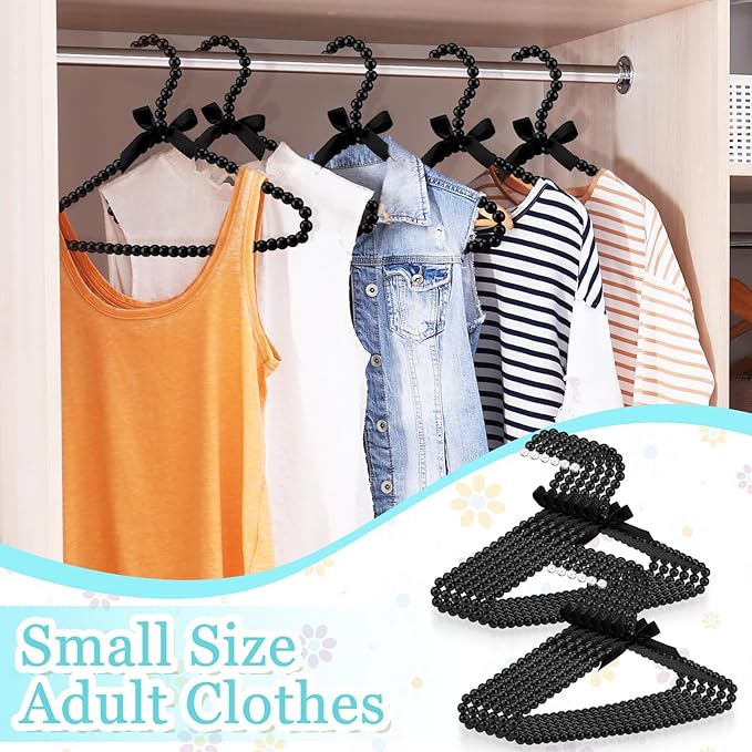 - Elegant and Charming: these small pearl clothes hangers are made of many small black pearls, which are paired with lovely bows, cute and pretty, making you feel in the good mood when you choose the clothes