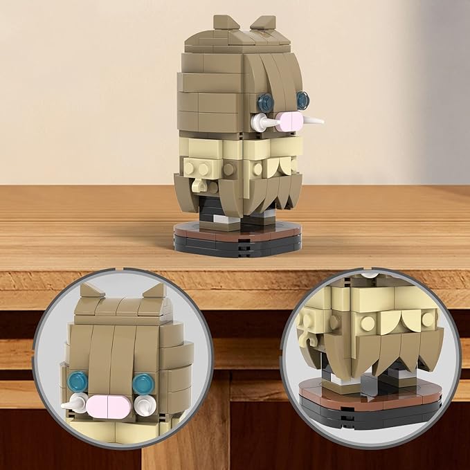 MOOXI-MOC Anime Brick Mini Headz Hashibira Inosuke Building Set,Creative Cute Building Blocks Children Kits,Gifts for Kids(171pcs)