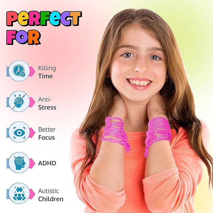 - Pink Quality Assurance: Our kid-friendly pink zipper bracelets are designed with safety and durability in mind. As unique fidget bracelets for anxiety, they provide a secure fidgeting outlet while celebrating the charm of pink.