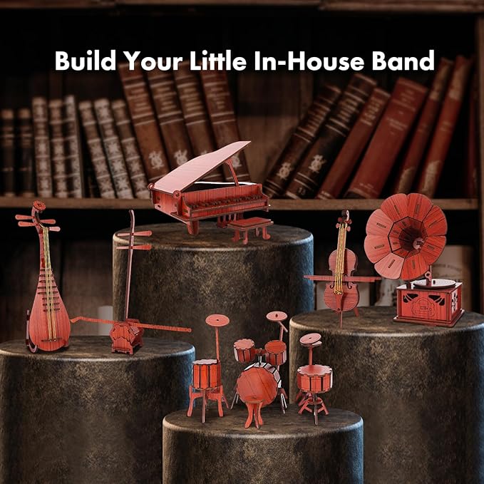 - 【Engaging Music Instrument Set】 Experience the joy of assembling these elaborate wooden 3D puzzles. This set includes six musical instruments: a piano, gramophone, drum kit, cello, erhu, and pipa. Each puzzle piece is crafted with high-quality wood and exquisite craftsmanship, not easily breakable, ensuring durability and a satisfying puzzle experience. Add joy and challenge to your life
