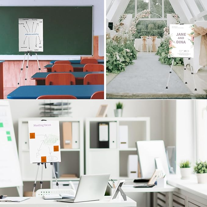 • Non-slipand sturdy easel stand for display of painting canvas, weddings, signs,drawing - Portable easel stand adopts stable triangular structure with rubber anti-slip pads installed at the bottom of the easel for strong stability and good anti-slip performance.Adjustable easel stand has built-in flexible wheels at each legs, making it easy to adjust the direction and angle during use.