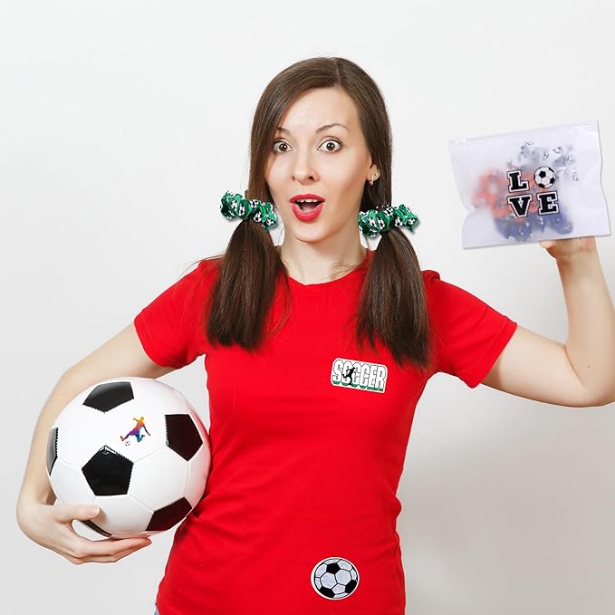 - Soccer Party Decorations Set:Our soccer theme party favors pack contains 20pcs satin scrunchies hair ties with 10 different styles,20pcs soccer ball keychain,20 pieces soccer cosmetic bags and 100 pieces soccer stickers.soccer gift bags abundant quantity,various football patterns and colors to meet your different needs in the soccer birthday party favors