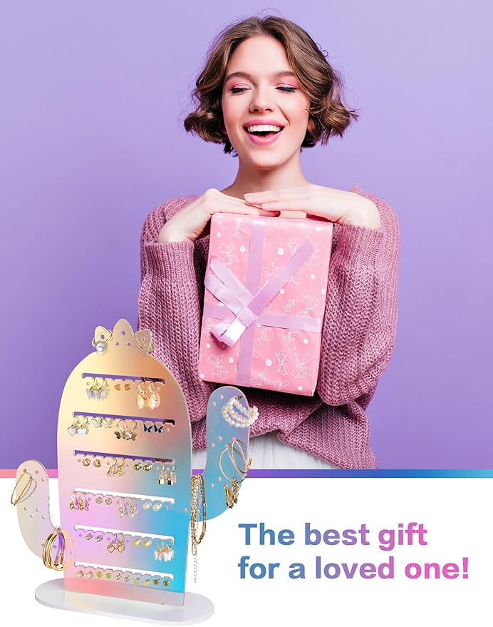 - šćRadiate Playful ColorsćEmbrace the magical play of light with its cute cactus design combined with mesmerizing rainbow acrylic panels. As the light dances off this earring holder, it reveals an array of captivating colors that's sure to enchant anyone who sets eyes on it.