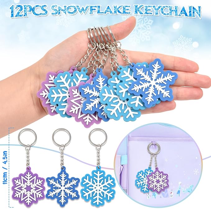 - Frozen Birthday Party Favors: We carefully prepared 1 set of frozen party favors. It comes with 12 non woven tote bags (4 styles), 12 stampers, 12 slap bracelets, 12 snowflake keychains (3 styles & 3 colors), and 50 snowflake stickers. A total of 98pcs, it can help you entertain 12 kids. Here's a cute and fun set of frozen themed party favors that will bring a lot of joy to the kids