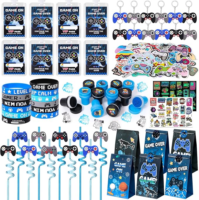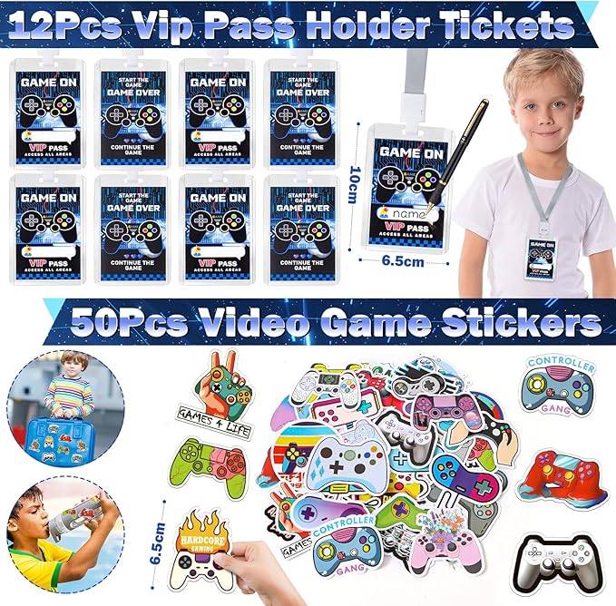 - Unique Gamer Party Favors: Different from ordinary game-themed party favors, we have carefully prepared interesting accessories such as food-grade plastic straws, paper bags, vip pass holder tickets, and game stampers. Each accessory is full of game elements. A variety of accessories can bring children different ways to play, greatly enhancing the fun of the party. It can also be paired with video game birthday party decorations to help you host a big gaming party