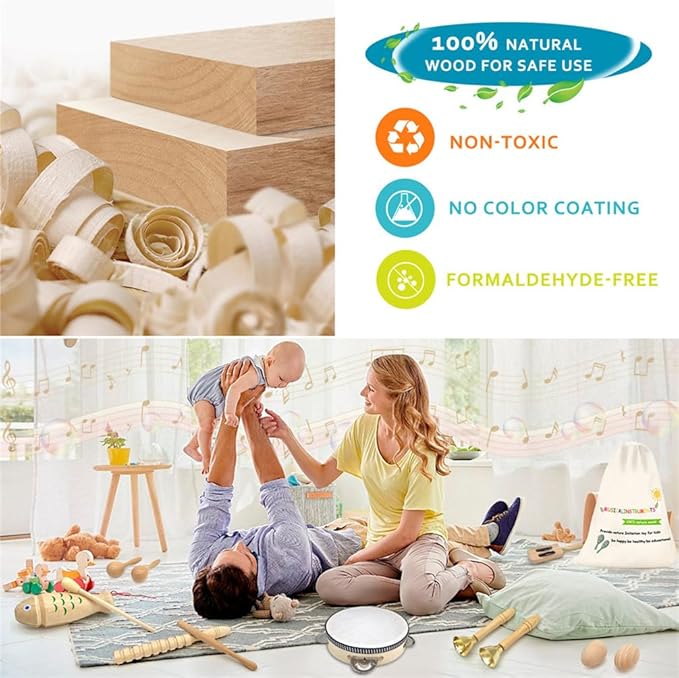 - Natural Wooden&Eco-friendly: Toddler musical instruments toy are made of high quality natural wood,non-toxic,no harmful colored paints,with a smooth finish,100% safe for children and pets,provide an extreme safe playing environment for kids.