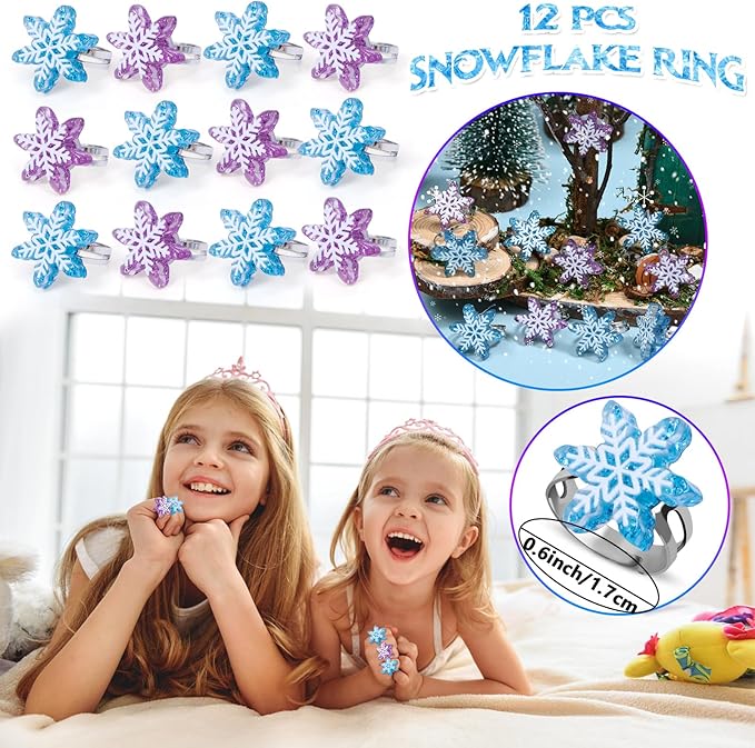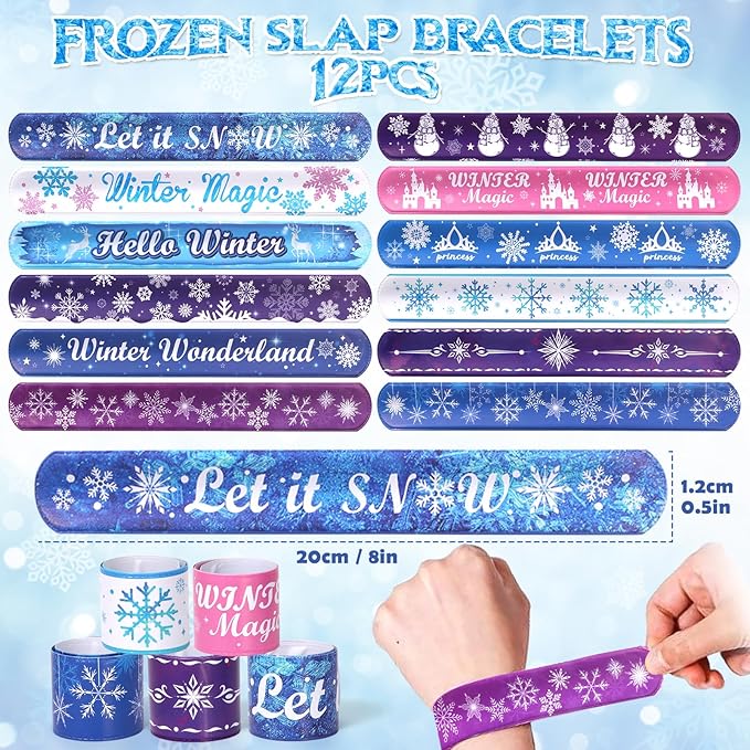 - Frozen Birthday Party Supplies: These delightful goodies make for ideal presents! There are also uniquely designed frozen party favor bags that can hold our rich gifts. Put on snowflake rings and slap bracelets, affix snowflake stamper or snowflake stickers to items, gifts can perfectly meet the needs of little girls as if they are integrated into the frozen world of their dreams! Ideal winter party favors for kids, snowflake party favors, winter wonderland party favors