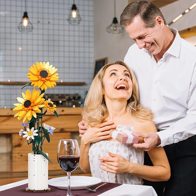 Sunflower Building Blocks Sets Flower Bouquet with Vase for Adults Teens, Flower Garden Building Toys for Girls Boys Home Decor - 821Pcs