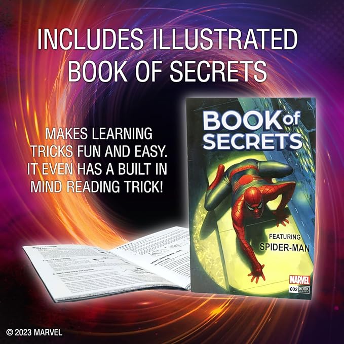 - MARVEL: Step into MARVEL’S Multiverse of Magic Set featuring SPIDER-MAN. Magic tricks have been carefully crafted to fit with the Marvel character’s super powers & story. Each of our MARVEL magic sets is packaged inside a deluxe quality oversized storage box with a comic book look and incredible MARVEL character art making it a true collector’s item. Secured with a magnetic cover, MARVEL magic kit & accessories stay together for safe keeping and easy storage.