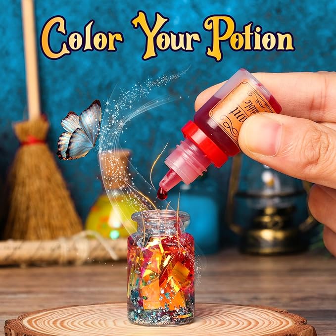 - MYSTERY POTION: Simply add water and coloring, gently shake bottle and magic begins! Add an extra element of surprise and excitement to your potion making adventure by adding water to the separate bottles included