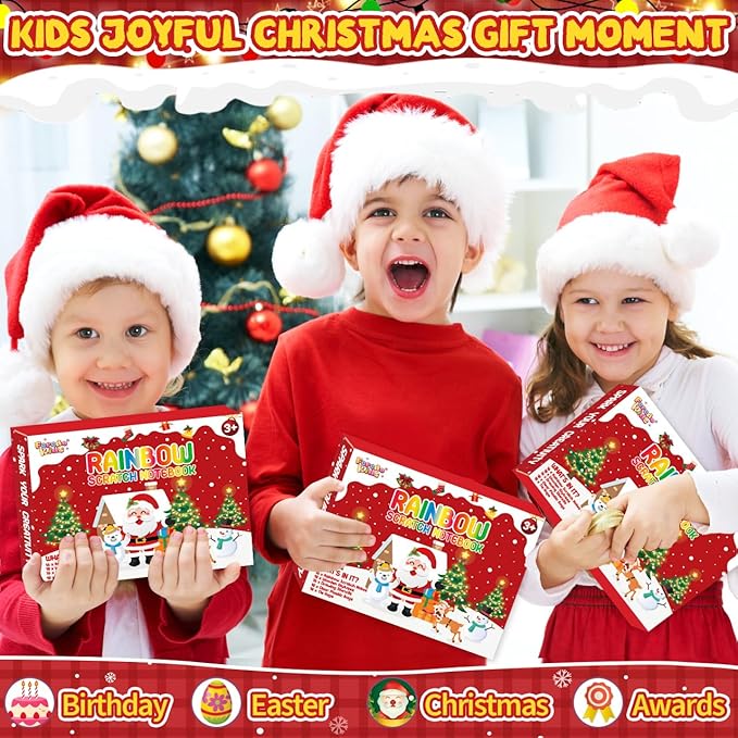- Cool Christmas Gifts for Kids - Maybe you are still considering Christmas stocking stuffers gifts or birthday gifts for kids, these rainbow scratch notebooks great for kids birthday party favors, school classroom rewards, classroom treasure box, carnival prizes, christmas stocking stuffers, Christmas giveaways, goodie bag fillers, family fun days, creative coloring activities in the classroom, road trips. This bulk toys set is the perfect gift for boys, girls or teenagers.