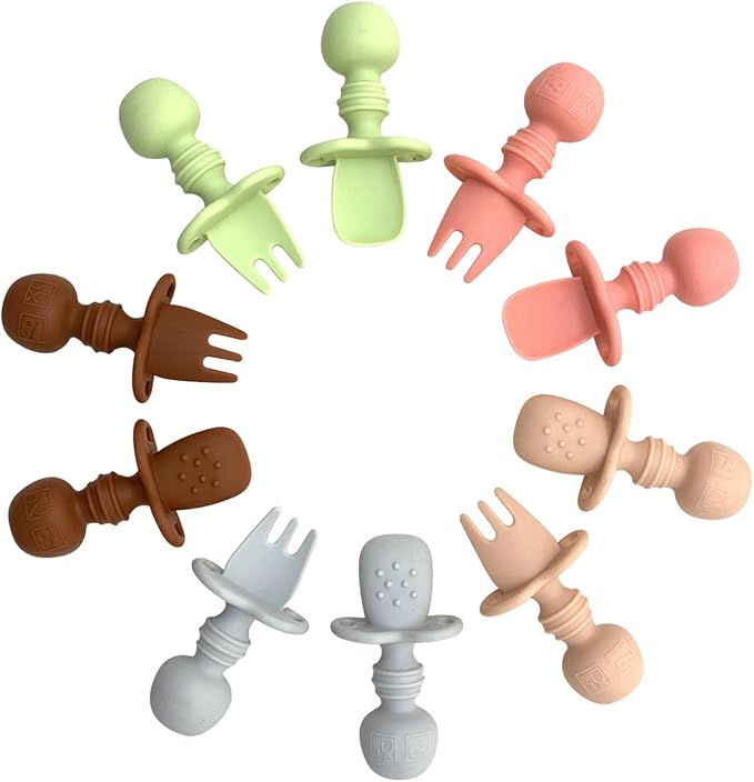 - DESIGN: ergonomically designed short round handle, the self feeding baby utensils are more suitable for the grip of the baby 6 months and up