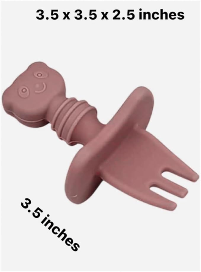 Baby Spoons and forks set, Silicone, Self Feeding pack of 2, Toddler spoon and fork set, Baby Led Weaning Supplies, First Stage Baby Essentials, Safe To Use, Gentle Teethers- (Earthy colors)