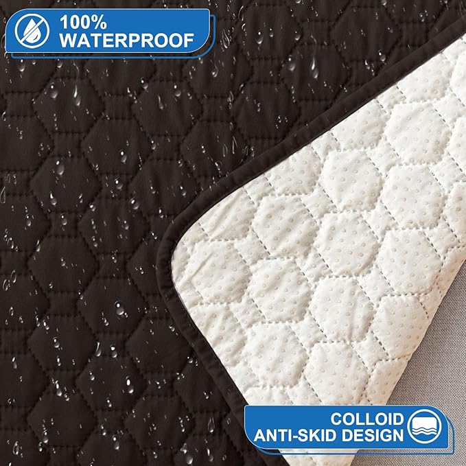 100% Waterproof Recliner Chair Covers That Stay in Place, Non-Slip Recliner Cover with 5 Pockets, Elastic Straps, Washable Reclining Chair Protector for Kids, Pets, Dogs, Chocolate