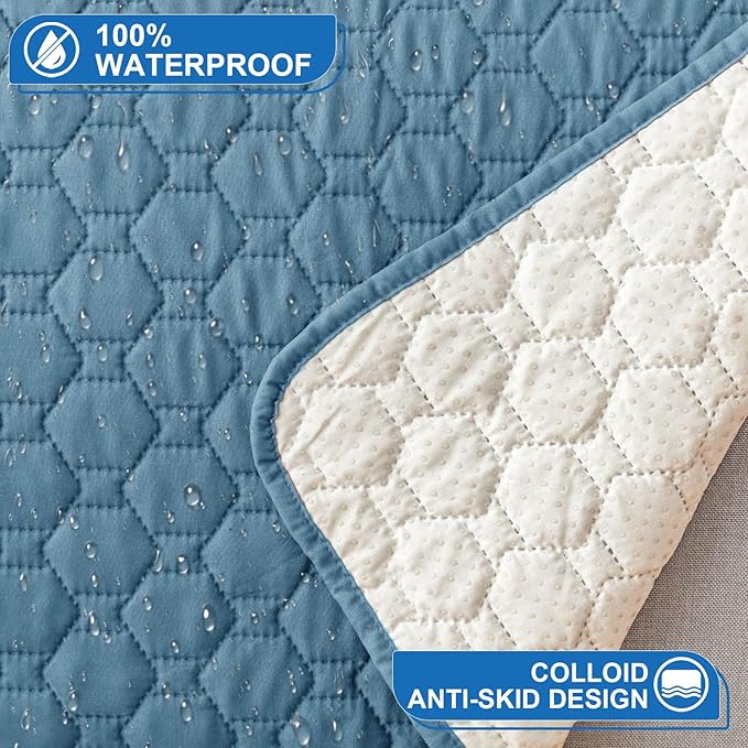 100% Waterproof Recliner Chair Covers, Anti-Slip Recliner Cover, Washable Recliner Slipcover with Pocket, Elastic Straps for Pets, Dogs, Gray Blue