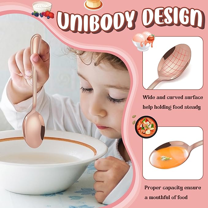 - 【MULTI-PURPOSE】The metal flatware not only be the exclusive one for children, but also be used for dessert, salad and more, Small size is suitable for carrying, Can be used outdoor and indoor, like camping, picnic, highly meet daily or entertaining needs