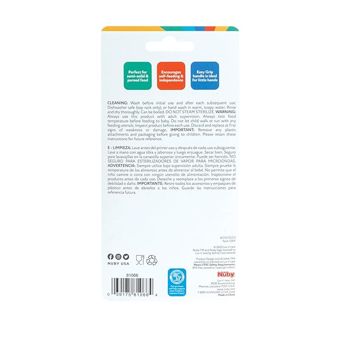 - SPOON SET FOR BABIES 6+ MONTHS: Nuby's Dip & Scoop Spoons actively engage little ones in their self-feeding journey, perfect for exploring semi-solid and pureed foods