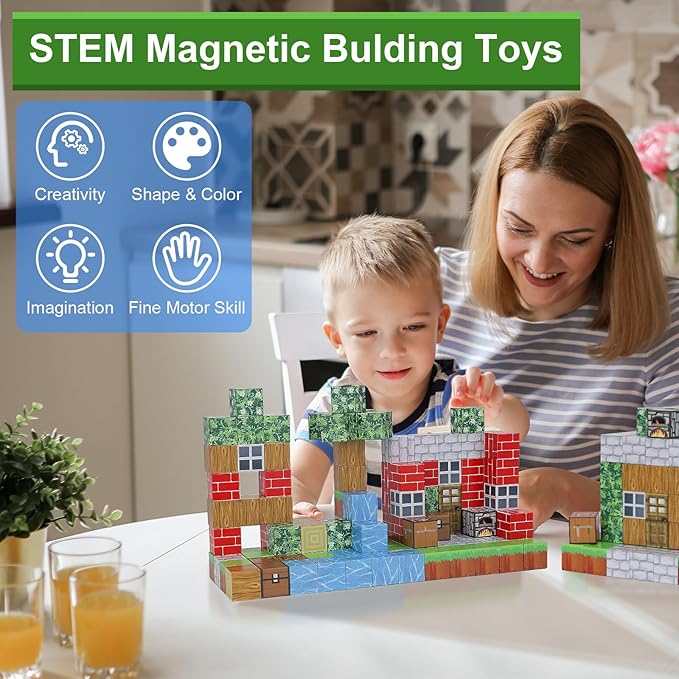 - BUILD, CREATE & UNLEASH IMAGINATION: Our Magnetic Blocks set allows kids to build and create various buildings and landscapes with ease, thanks to the strong magnetic power. Let their imagination run wild!