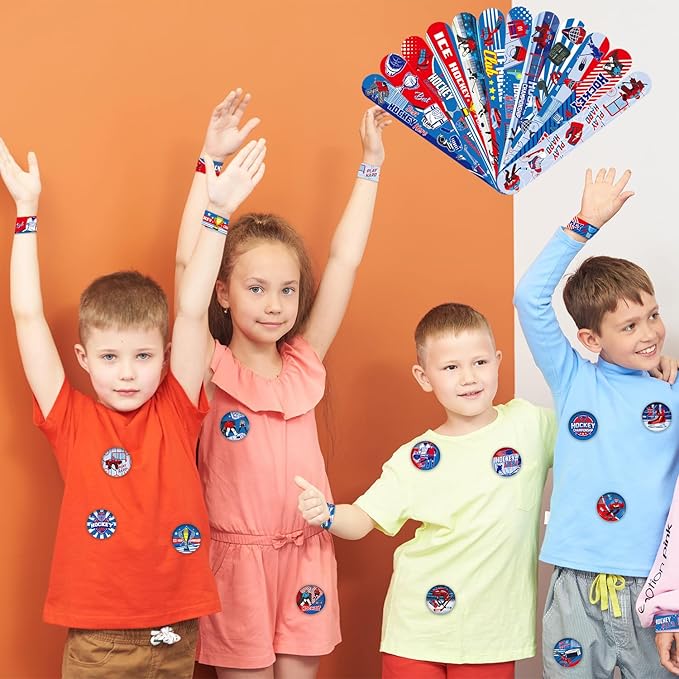- Classic Hockey Design: Designed with hockey-related patterns and texts, hockey goodie bag, hockey button badges, hockey slap bracelets, and hockey pencils echo the hockey theme party to enhance the atmosphere; Our hockey birthday party supplies can be matched with your hockey-style outfit, wear them to a hockey themed party to make you glamorous and the focus of the crowd.