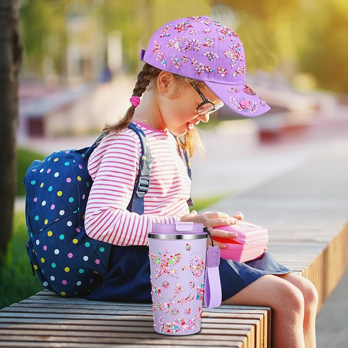 - Crafts Gifts: these arts and crafts package include a piece of 17 oz purple stainless steel tumbler, a piece of purple baseball cap, a set of friendship bracelet making kit and 20 sheets of butterfly diamond stickers; You can use the gemstone and stickers to decorate journals, laptops or any smooth surface; Stick them on your belongings, decorate your own bottles, the only limit is your imagination