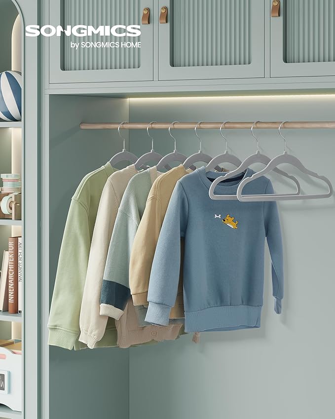- [Non-Slip Design] No more worries about clothes slipping off with these kids clothes hangers. The velvet surface securely holds your child's clothes, keeping them in the right position