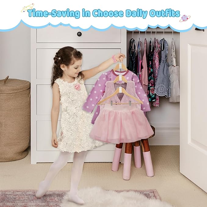 - Maximize Closet Space for Baby Growing Needs: Babies grow fast, their clothing sizes change frequently, and closet space never seems to be enough. Our innovative kids hangers hook for baby are designed to cater to your little one's ever-expanding closet. By connecting hangers vertically, you can effectively triple or more the amount of clothes you can hang in the same area, avoiding wasting space in the lower part of the closet and allowing you to store more baby clothes without the clutter.
