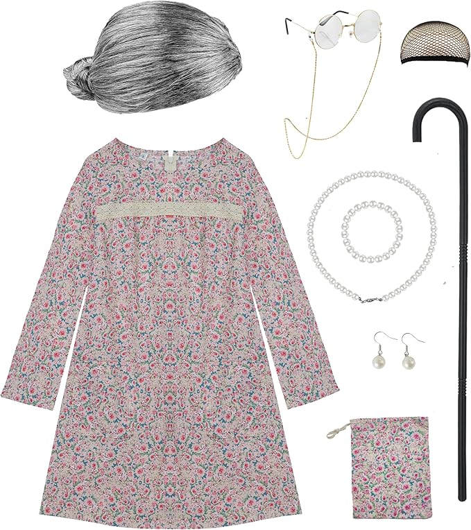 - 5:Using this Girl's Old Lady Costume Kit which makes a lot more sense,Look,no need time flying,your little girl choose a clever little tool to turn any tot into a grandma faster than you can say when I was old.