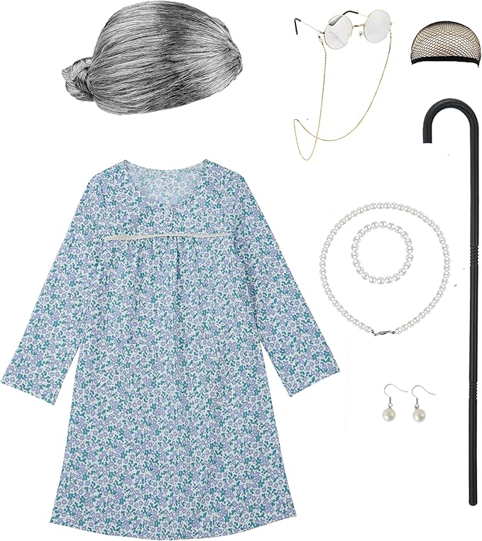 - 3:Whether your little girl is dressing up for a costume party, a play, or just for fun, this Dress makes her feel like a grandma from another time.old lady costume for kids