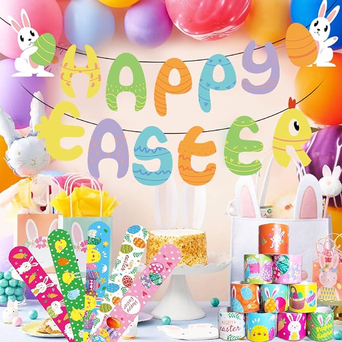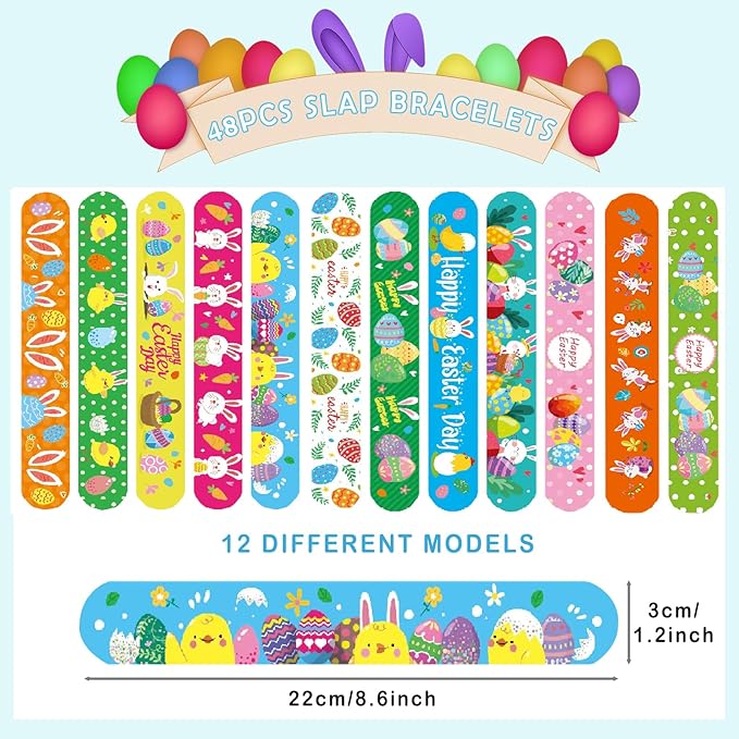 Viicoor Easter Slap Bracelets 48 PCS Snap Bracelet Party Favors Basket Bag Filler School Prizes Birthday Gifts Party Favors Easter Gifts Bulk (#20-Easter-48pcs)