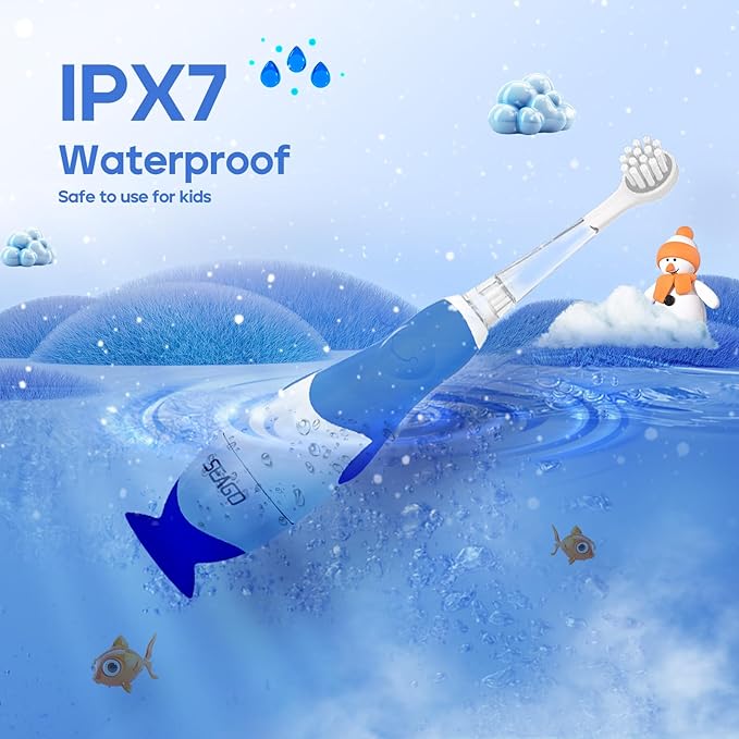 - IPX7 Waterproof Design: Seago children's power toothbrushes can be used in the shower. Long battery life supported by AAA battery,Batteries not included in the package,so you can safely use it in the bathing or showering