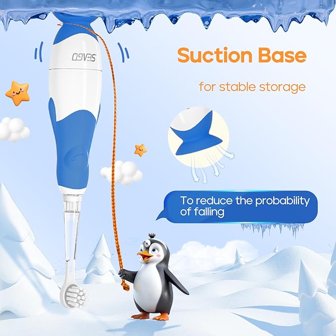 - Fun Baby Electric Toothbrush: Toddlers's enjoyment of brushing their teeth can be greatly influenced by the appealing external design of the penguin. 4 mini and soft brush heads specially designed for the mouth of children aged 6 months to 4 years