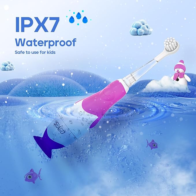 - IPX7 Waterproof Design: Seago children's power toothbrushes can be used in the shower. Long battery life supported by AAA battery,Batteries not included in the package.Seago sg513 kid electric toothbrush is available in blue and pink