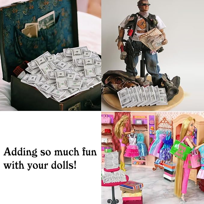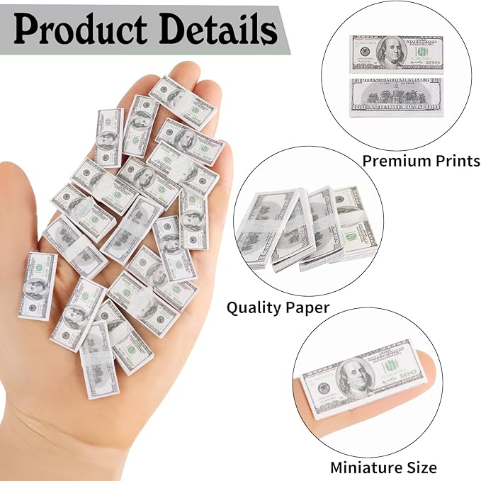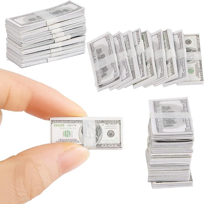 - Miniature Size:The mini fake dollar measure 1.18 x 0.49 inches,miniature size for 1:12 dollhouse decoration supply.