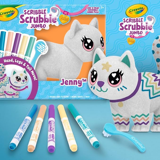 • JUMBO & POSEABLE: Your Scribble Scrubbie family has something BIG to celebrate - a 6-inch Scribble Scrubbie Pet! Jenny is catwalk ready with a movable head, tail, and legs!